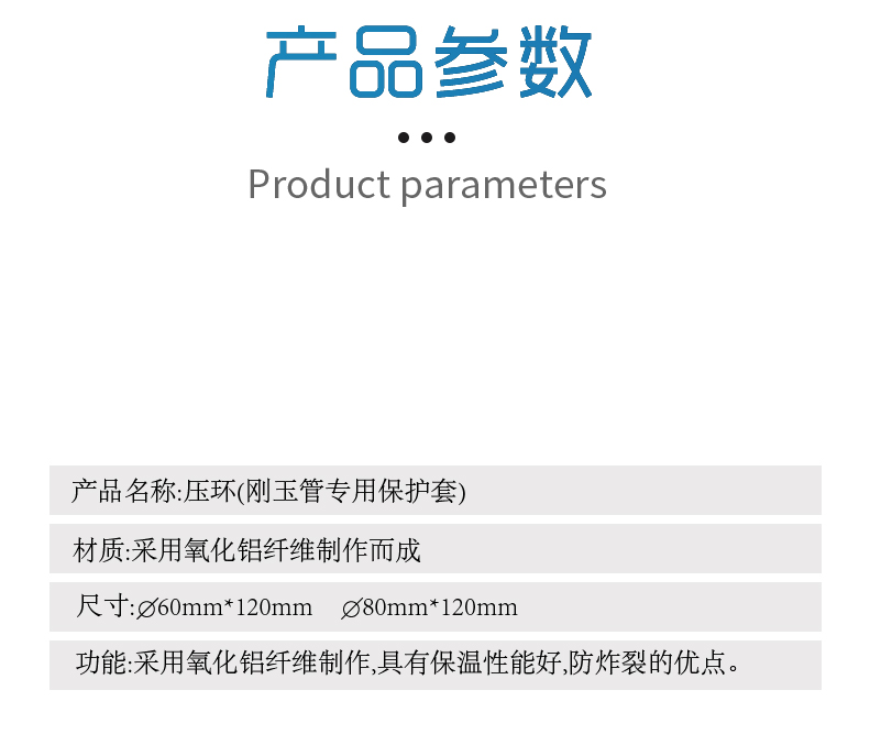 產(chǎn)品概述:產(chǎn)品名稱:壓環(huán)(剛玉管專用保護套)